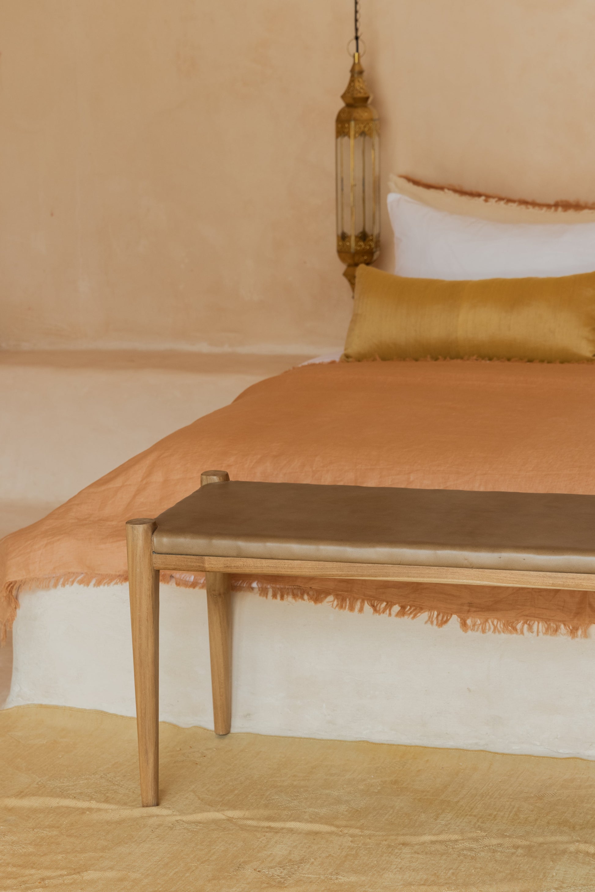 Aman trasuda durevolezza ed eleganza, realizzata con cura in teak proveniente da fonti sostenibili e pregiata pelle. Che venga utilizzata in corridoio, ai piedi del letto o in soggiorno come elemento decorativo, il suo design versatile valorizza qualsiasi arredamento. Il robusto teak garantisce longevità, mentre la pelle di alta qualità invecchia con eleganza nel tempo. Aggiungi un tocco di raffinatezza a qualsiasi spazio con Aman. La panca Aman in teak e pelle è progettata con cura utilizzando materiali provenienti da fonti sostenibili come teak e pelle. Il suo design versatile e la robusta struttura in teak garantiscono longevità, mentre la pelle di alta qualità invecchia con eleganza nel tempo. Valorizza l'arredamento della tua casa con questo sofisticato elemento d'arredo.