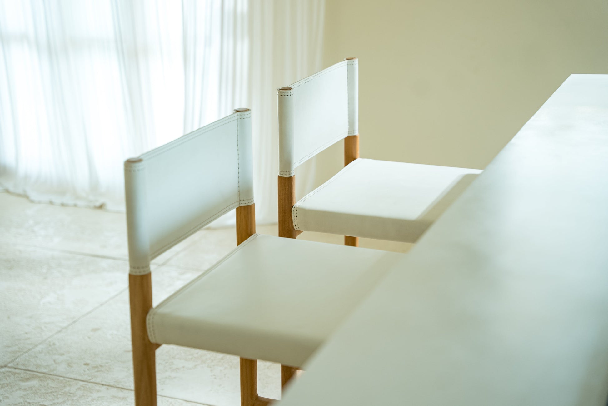 Realizzati con struttura in teak per una maggiore resistenza, lo schienale e la seduta in pelle piatta offrono una seduta confortevole, aggiungendo un tocco di eleganza a qualsiasi spazio. Questi sgabelli sono dotati di una comoda traversa che consente di rilassarsi e chiacchierare mentre si mangia o si beve. Migliora la tua esperienza di seduta con lo sgabello Luna.