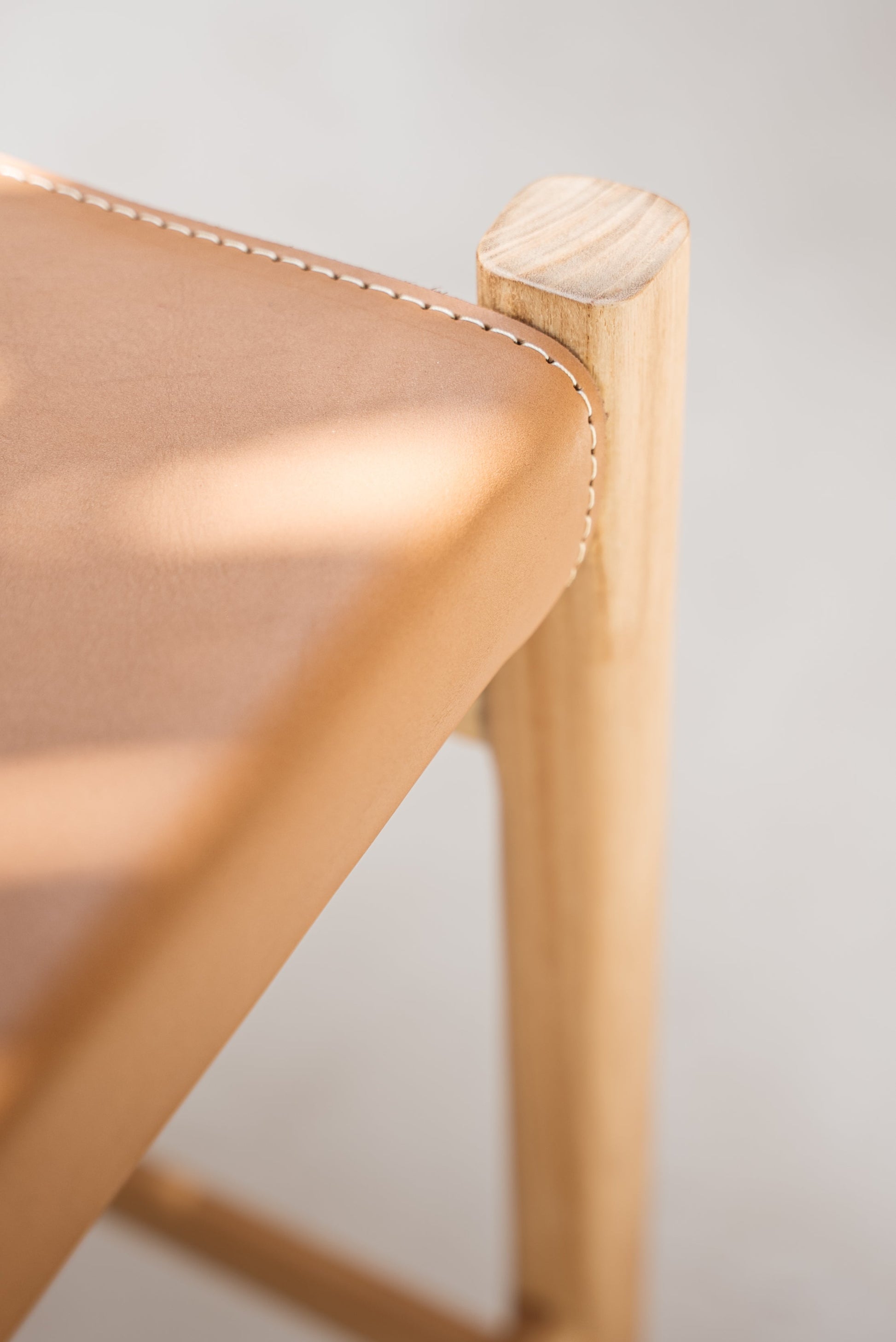 Scopri il perfetto mix di stile e comfort con lo sgabello da bar Sensa in teak e pelle intrecciata senza schienale. Il suo design minimalista, realizzato in teak indonesiano di alta qualità e pelle intrecciata, trasuda modernità garantendo al contempo un'esperienza di seduta rilassante, perfetta sia per ambienti residenziali che commerciali.